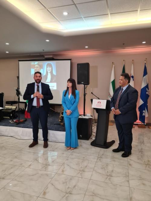 29 al 30 settembre 2023, Montreal (Canada), missione istituzione in Canada in occasione del 50 anniversario dell’Associazione Emilia-Romagna del Canada di Montreal. Nella foto il Presidente della Consulta Marco Fabbri (a sinistra) e la Vicepresidente Valentina Stragliati (centrale) e il Presidente dell'Associazione, Paolo Benzi (a destra)