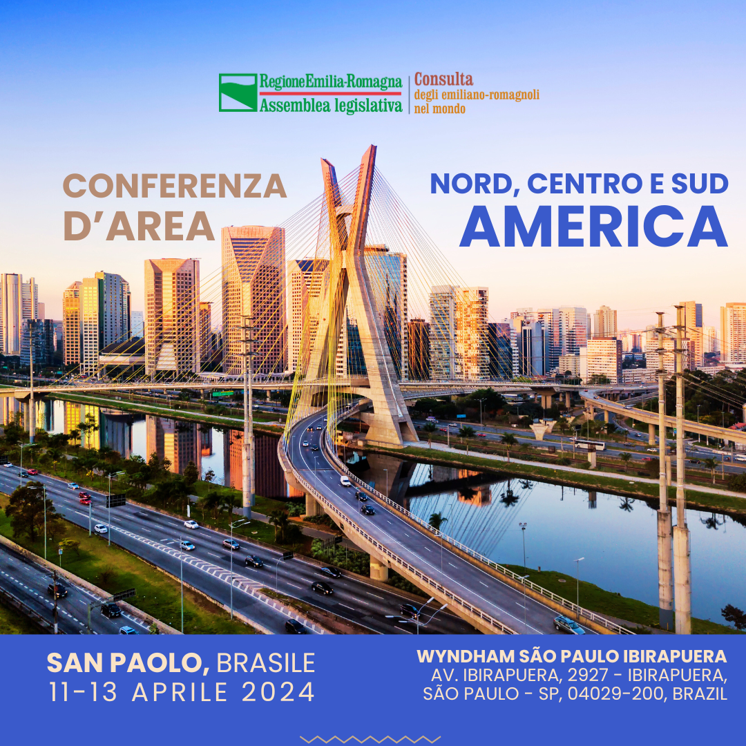 Locandina della Conferenza d'area delle Associazioni del Nord e Sud e Centro America, 11-13 aprile 2024, San Paolo (Brasile)