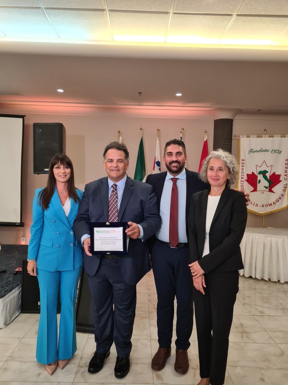 29 al 30 settembre 2023, Montreal (Canada), missione istituzione in Canada in occasione del 50 anniversario dell’Associazione Emilia-Romagna del Canada di Montreal. Nella foto la Vicepresidente della Consulta Valentina Stragliati (a sinistra), il Presidente dell'Associazione, Paolo Benzi e il Presidente della Consulta, Marco Fabbri (centrale), la Consultrice per il Canada, Fiorella Foscarini (a destra)
