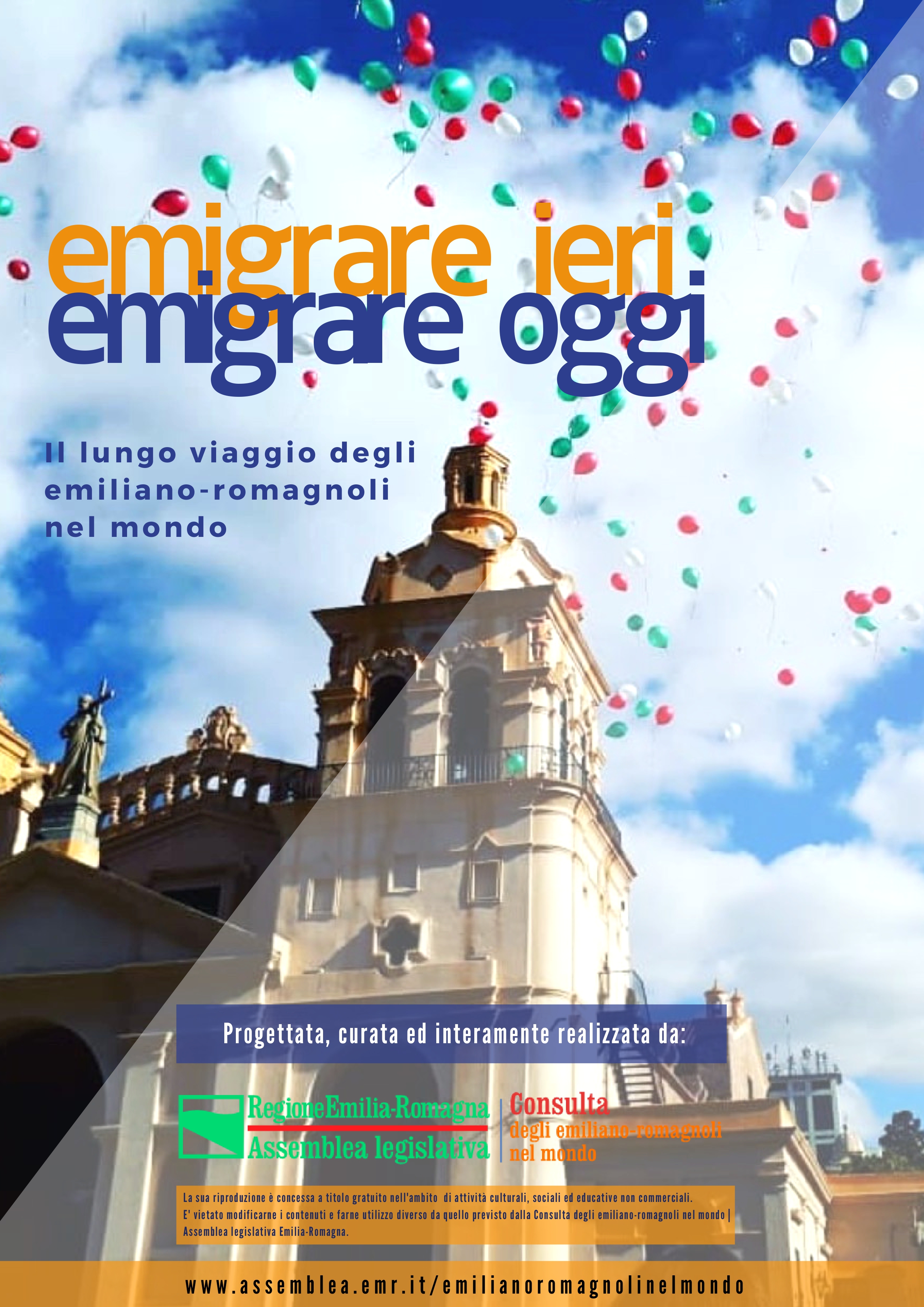 Locandina Mostra "Emigrare ieri, emigrare oggi", progettata, curata e realizzata dalla Consulta degli emiliano-romagnoli nel mondo in occasione della Riunione della Consulta 2018 e del Convegno organizzato il 26 ottobre 2018. La mostra è disponibile su MIGRER.