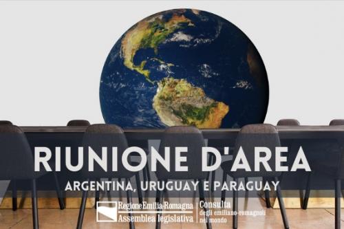 Locandina Riunione d'Area della Associazioni di emiliano-romagnoli dell'Argentina, Uruguay e Paraguay, 2022, in videoconferenza