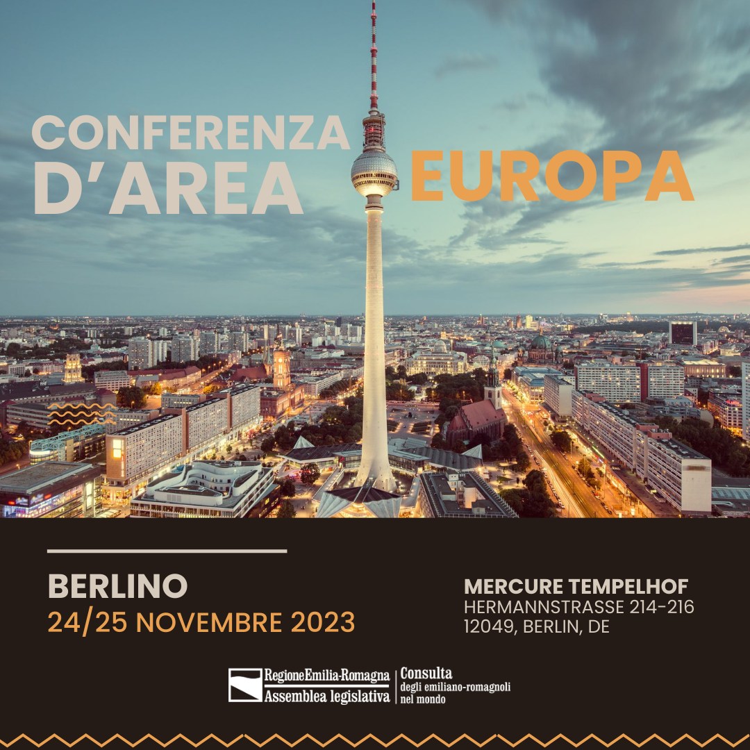 Locandina Conferenza d'area delle Associazioni di emiliano-romagnoli dell'Europa, 23-24 novembre 2023, Berlino