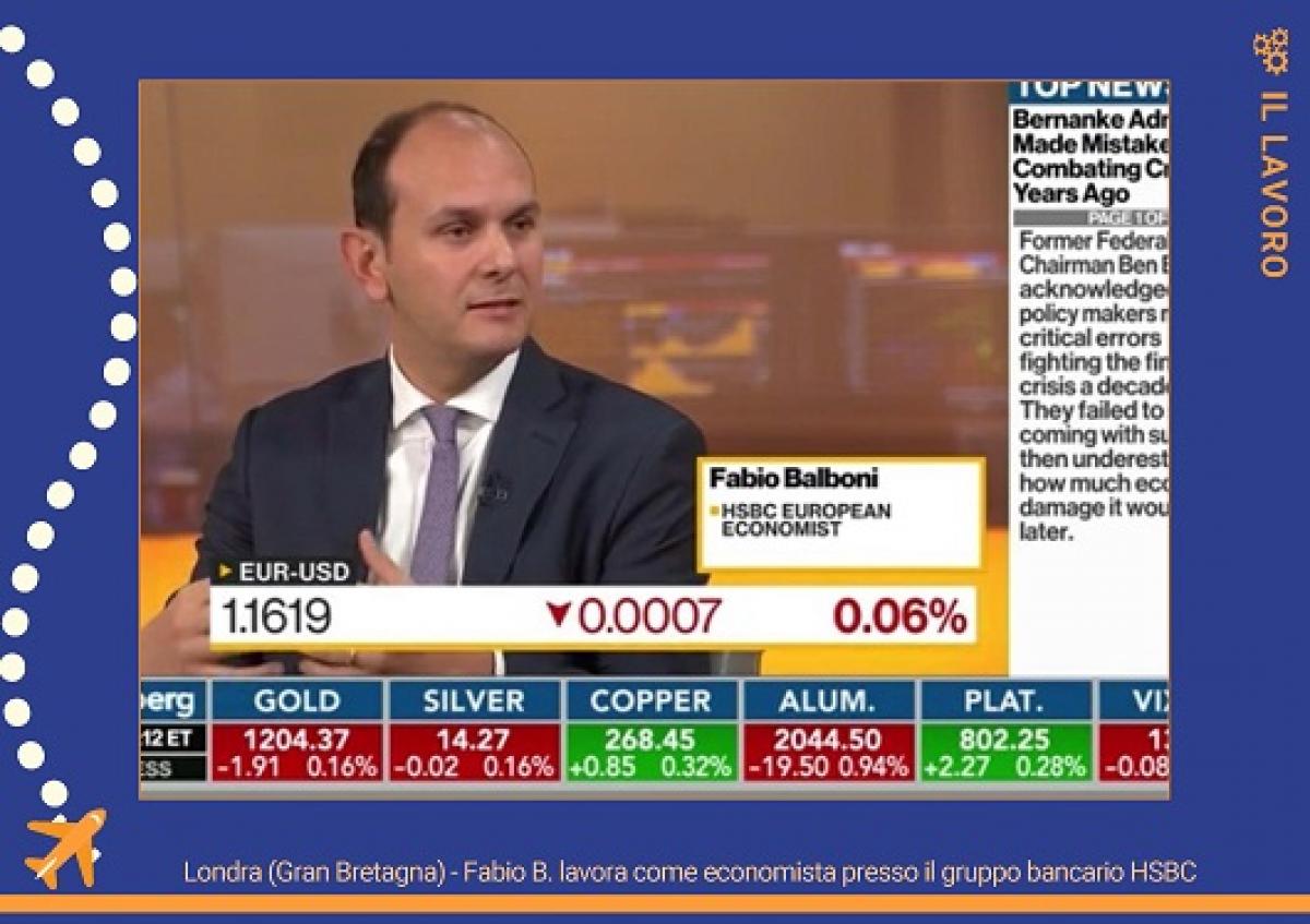 Dalla provincia di Ferrara a Londra, passando per Francoforte e Bruxelles. La storia di Fabio Balboni svela una vera e propria vocazione per l’economia. La sua avventura inizia all’università di Bologna durante la specialistica in Scienze internazionali diplomatiche grazie ad uno stage alla Commissione europea. A Londra ci arriva poco dopo per il dottorato. Lì lavora prima per il ministero dell’Economia inglese e ora per l’Hsbc, un importante istituto bancario. Sotto il Big Ben trova anche l’amore. Ora è sposato e ha un figlio di tre anni, “perfettamente bilingue”, che però sa distinguere la vera lasagna italiana.
