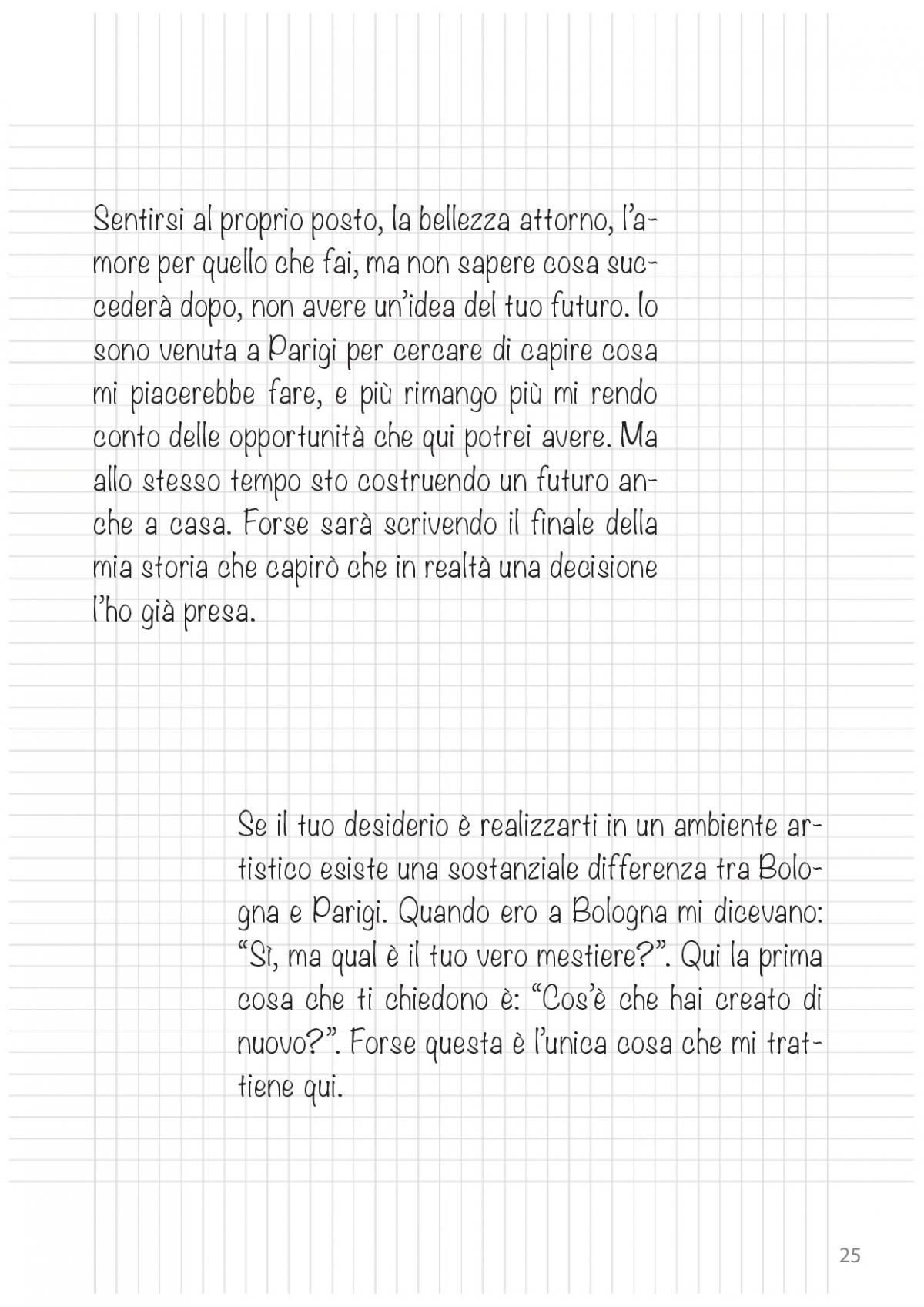 Il nucleo centrale del volume ospita i racconti, risultato finale del lavoro di scrittura dei partecipanti al laboratorio tenutosi a Parigi realizzato all'interno del progetto di ricerca. Ogni storia qui raccolta nasce come espressione di un’idea, un sogno, una scelta, un frammento di vita, svincolandosi da quel dovere alla testimonianza che spesso incatena la figura del migrante alla realtà fattuale. Il diritto all’immaginazione è stato ciò che ha consentito di attivare la funzione terapeutica della pratica autobiografica, slegando l’io narrativo dall’io individuale. I racconti che si leggeranno, diversi tra loro per morfologia e tema, sono spesso ironici, talvolta amari, e ognuno esplora a suo modo le complesse dinamiche, emozionali e materiali, del viaggio di migrazione.