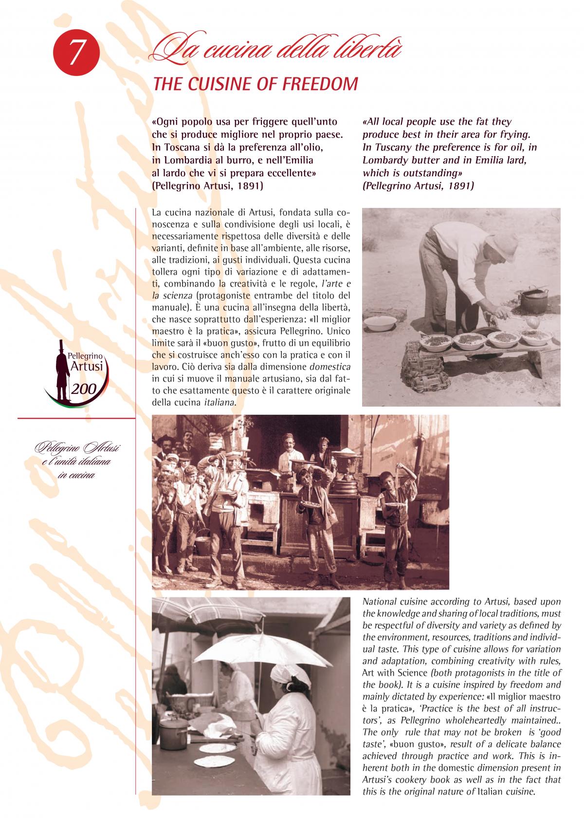 Prima ancora che una persona, Artusi è un libro di cucina. Anzi, il libro di cucina per eccellenza, quello che fonda la cucina italiana moderna: quindici edizioni in vent’anni, dal 1891 al 1911, riviste e curate direttamente dall’autore, per essere poi, fino ai giorni nostri, continuamente rieditato, copiato, tradotto (finora in dieci lingue: catalano, francese, giapponese, inglese, olandese, polacco, portoghese, russo, spagnolo, tedesco), diventando nella contemporaneità l'ambasciatore della cucina italiana nel mondo.