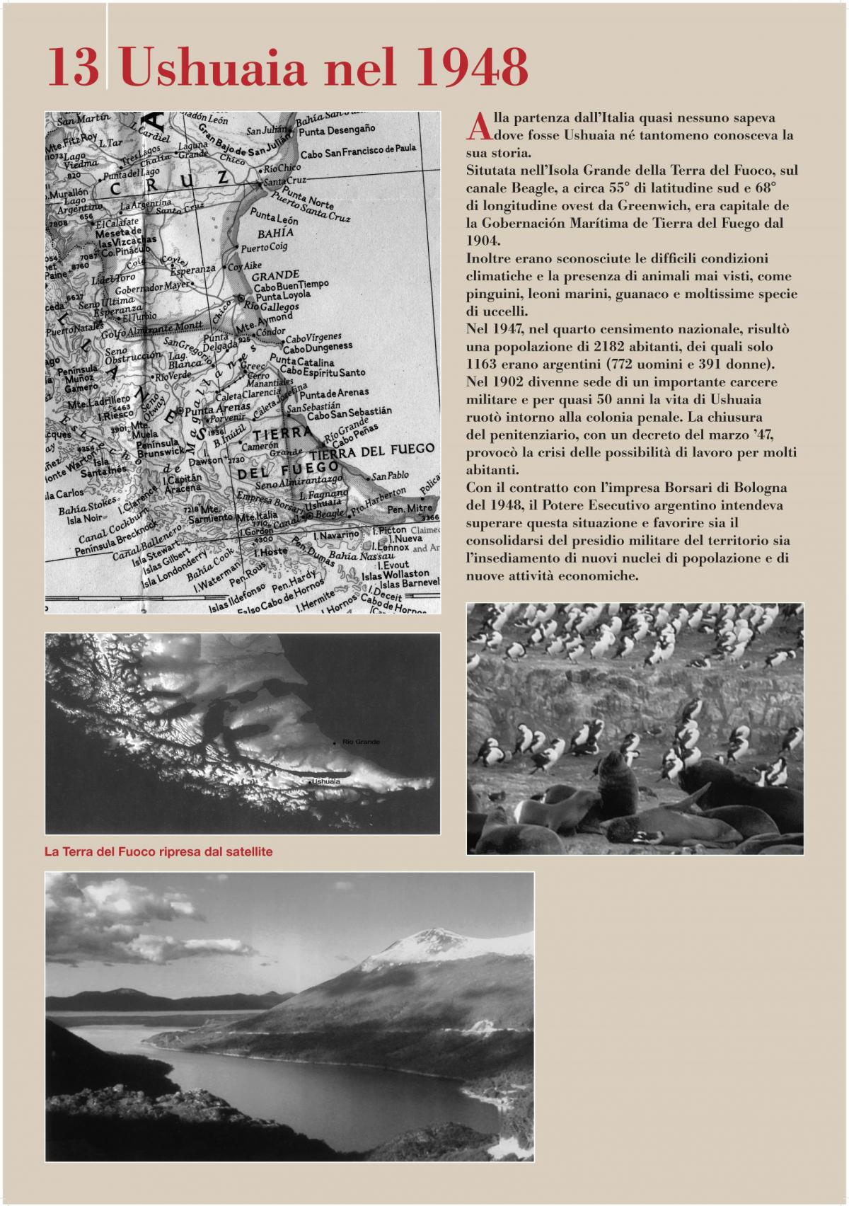 Nel 1948 l'impresa Borsari di Bologna, con i materiali portati dall'Italia, costruì i nuovi quartieri della moderna Ushuaia con ospedale, scuola, centrale idroelettrica e strade. Le costruzioni di allora sono ancora tutte abitate