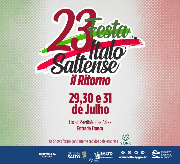 L'Associazione Emiliano-Romagnola Bandeirante di Salto e Itu/Brasile ha partecipato alla 23ª Festa Italiana "Il ritorno" (giorni 29, 30 e 31 luglio 2022) organizzata dall’Assessorato alla Cultura e Turismo del Comune di Salto.