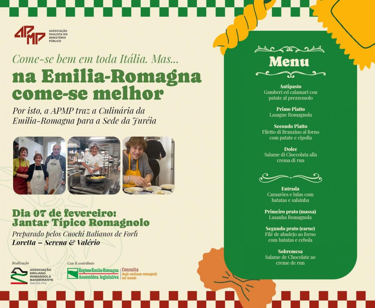 Il 31 gennaio 2026 il Trio di Cuochi Romagnoli preparerà un pranzo tipico romagnolo, utilizzando prodotti d'eccellenza della Regione Emilia-Romagna, per celebrare la chiusura del progetto e il 21° anniversario dell'Associazione Emiliano-Romagnola Bandeirante, al quale parteciperanno più di 100 persone.