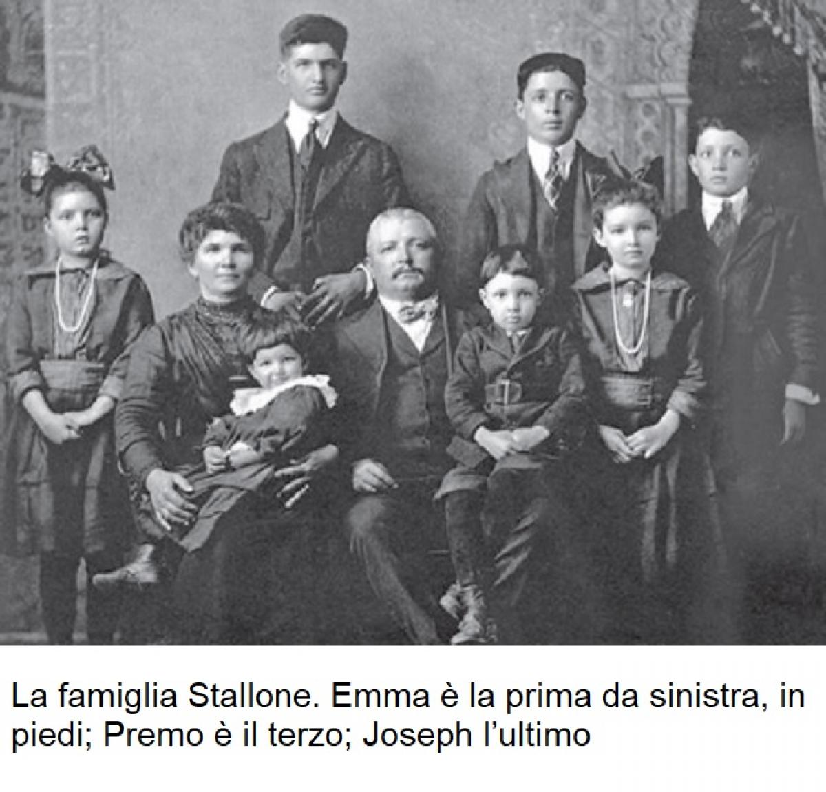 Quando viene sera, Gisto accende una lampada sulla veranda: fra un po’ arriverà Premo Stallone a corteggiare sua figlia Colomba, e lui, dalla finestra che dà proprio sulla veranda, controlla che non succeda niente di disdicevole. Qualche anno dopo Agostino metterà incinta Maria, ma il fattaccio non è accaduto certamente qui. Come gli Stallone, anche i Mascagni hanno viaggiato da Genova a New York coi Verucchi, e Genoveffa, la figlia maggiore di Gisto, sposerà Celio Mascagni. E Raffaele Verucchi sposa anche lui una Stallone, Emma, sorella di Premo. E la catena si allunga: un altro Stallone, Joseph, sposa Mary Benedettini, di Vergato, e un’altra Mascagni, Emilia, sposa il calzolaio Roberto Gamberi, anche lui di Vergato, anche lui conosciuto sulla “Montevideo”.